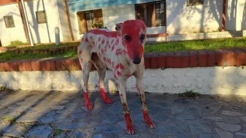 HORROR EN BARADERO: PINTARON A UNA PERRITA CON PINTURA ROJA