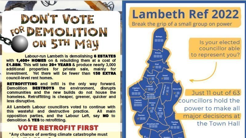 We are organising a great leaflet drop around Lambeth asking voters: Don't Vote for Demolition on 5th May.
