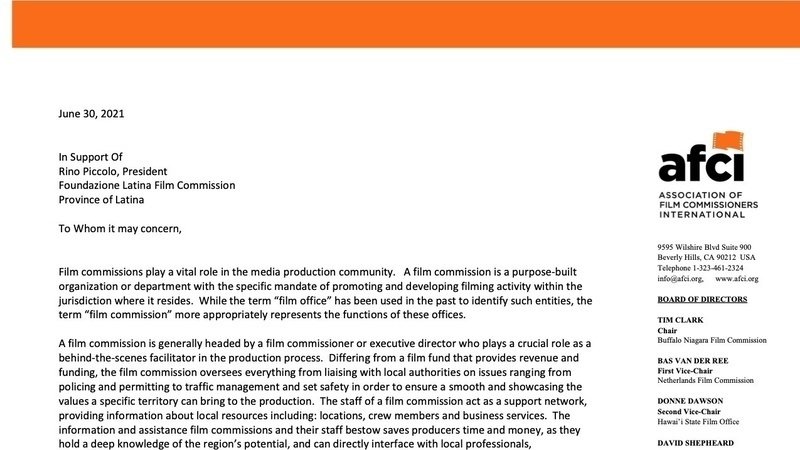 Petition updateSalva la Latina Film CommissionLettera di supporto dalla AFCI- Letter of support from AFCI