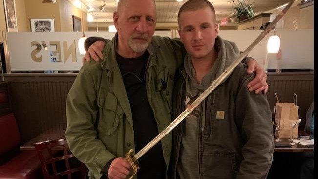Here he is celebrating the USMC's Birthday by cutting the cake with the M1859 USMC NCO sword. It is the oldest weapon in continuous use in the United States military, according to MarineParents.com.