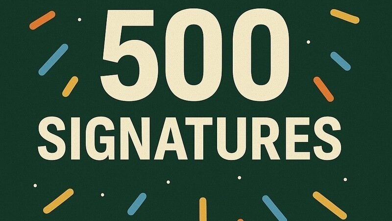 We’ve now passed a huge milestone – over 500 signatures – and currently sit at 613! 🙌
