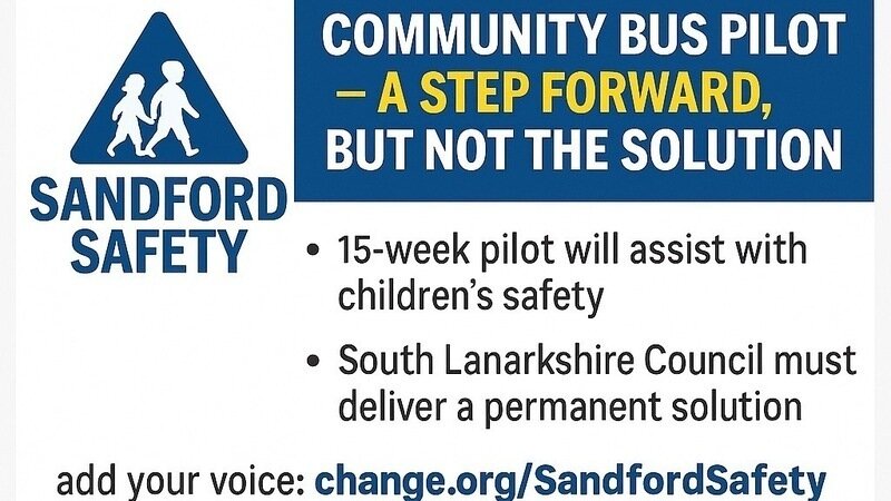 We want to congratulate our Community Council for securing temporary funding to provide a 15-week pilot community bus on the Sandford–Strathaven route. This will go a long way to assisting with the immediate safety of children who have to travel to and from school. 👏