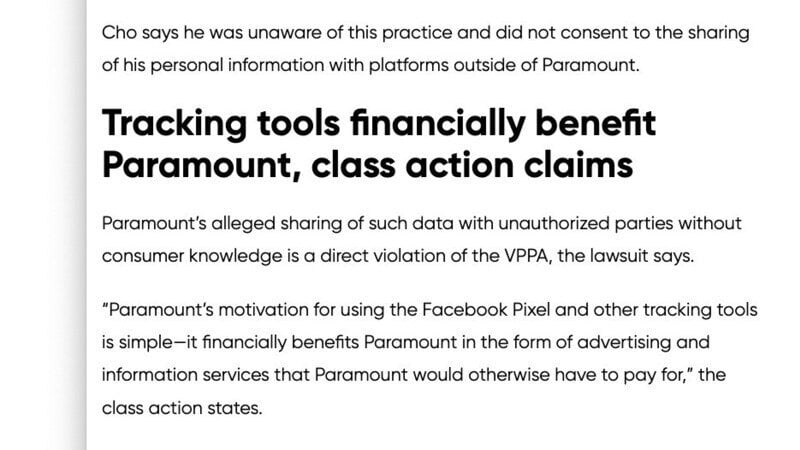 I have suspected that Paramount is profiting from the sharing of their customer viewing habits, and this class action lawsuit appears to expose the practice.