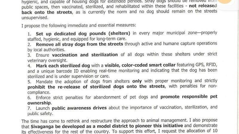 We, the undersigned citizens, animal lovers, and volunteers, strongly oppose the recent proposal made by MP Karti P. Chidambaram advocating a “No Dogs on Streets” policy and the establishment of large-scale dog pounds to permanently remove stray dogs from public spaces.