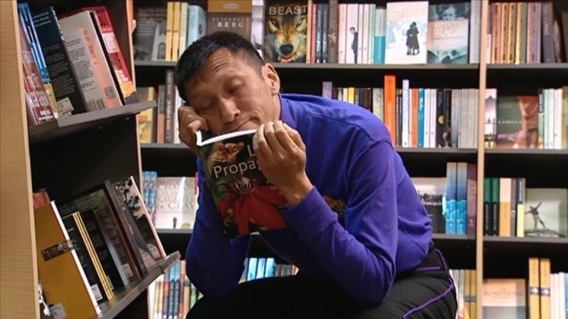 It shows Jeff who's fallen asleep at the library while reading a book with Captain Feathersword as the host and Greg Wiggle as the contestant.