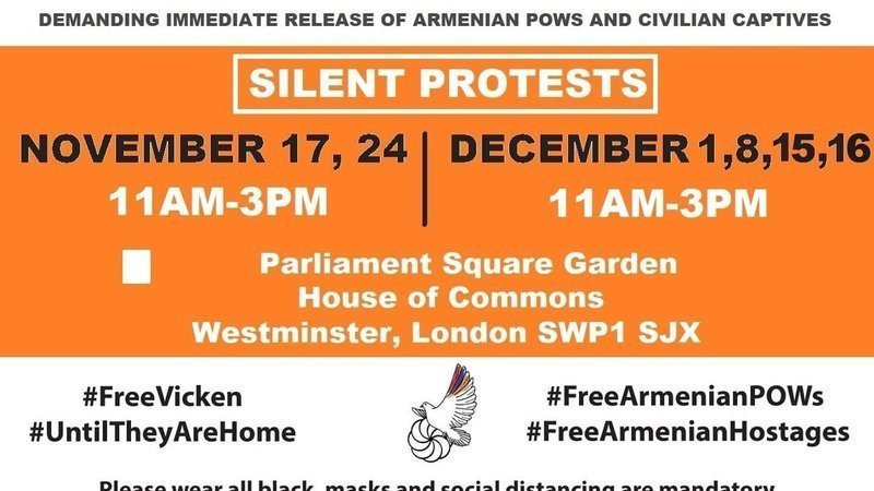 Members of the British Armenian community have been holding silent protests on Wednesdays in front of the House of Commons during Prime Minister’s Q&A to denounce the British Government’s neglect and silence regarding the crisis of Armenian POWs held illegally in Azerbaijan. Since the trilateral Ceasefire Agreement of 9 November 2020 ending the military action over NagornoKarabakh, the Azerbaijani government has refused to comply with Article 8 for the immediate exchange of all prisoners of war. This grossly violates the Universal Declaration of Human Rights and the Third Geneva Convention relative to the treatment of prisoners of war (POWs).