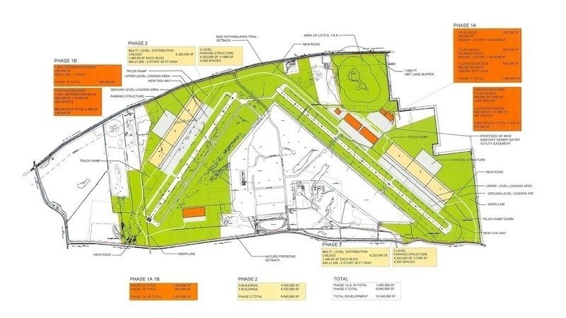 The graphic above was part of the Ghermezians' developmental plan submitted to the RIDA in September. It shows their intention to build ten million square feet of warehouses and support buildings for an air cargo distribution hub.