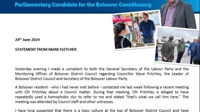 Councillor Fritchley has now been suspended as a member of the Labour Party but is still the Leader of Bolsover District Council while he is suspended. All candidates for the Bolsover Constituency seat have condemned the alleged comments apart from Natalie Fleet, the Labour candidate, who hasn't said anything about it.