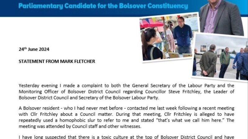 We are appalled by the alleged homophobic comments that Council Leader Steve Fritchley made about Mark Fletcher, the most recent MP and the Conservative candidate in this general election.