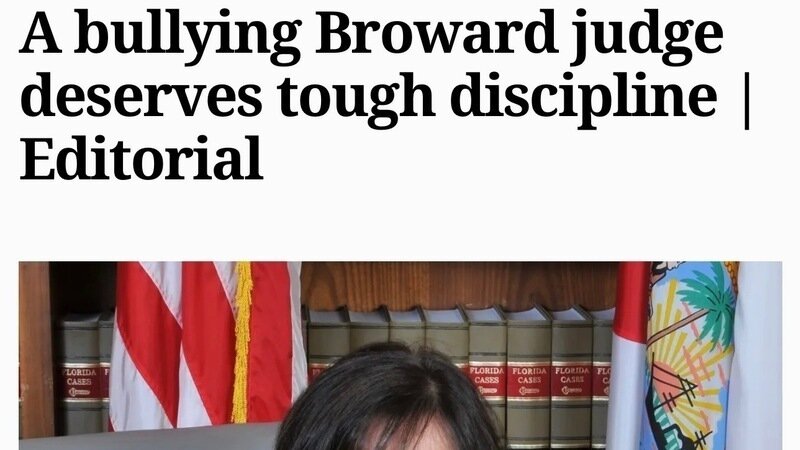 The Sun Sentinel (major newspaper in South Florida) has agreed Judge Mardi Levey Cohen should face disciplinary actions for bullying Kaysia Earley, Esq. during the reelection. Please read the article. Click on the link below to read the article for yourself.