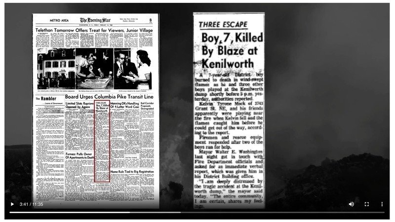 In 1968, Washington, DC was still a segregated city. Ward 7 was—and still is—a predominantly Black, impoverished, under resourced section of DC. Those segregation policies allowed the National Park Service and the U.S. Army Corps of Engineers to let the then federally controlled, District of Columbia government dump the garbage it collected along a stretch of land along the Anacostia River in the Kenilworth neighborhood of DC's Ward 7—Kelvin’s neighborhood—which was then set ablaze regularly for more than 25 years.