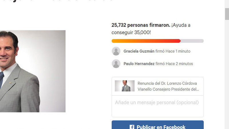 Обновление к петицииRenuncia del Dr. Lorenzo Córdova Vianello Consejero Presidente del INENecesitamos más firmas