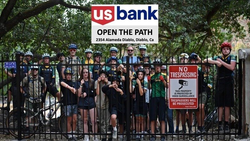 We request that US Bank reopen the path in Diablo to allow safe access for people going to Mount Diablo State Park. Local High School Mountain Bike Clubs, students, coaches, parents, and the public will hold a Rally at US Bank in Danville at the Livery (651 San Ramon Valley Blvd) on Wednesday, November 1st from 12 noon to 2pm. Keep access to Mount Diablo State Park safe for everyone. Visit bikedanville.org for updates, legal complaints, historical documents, videos, etc.