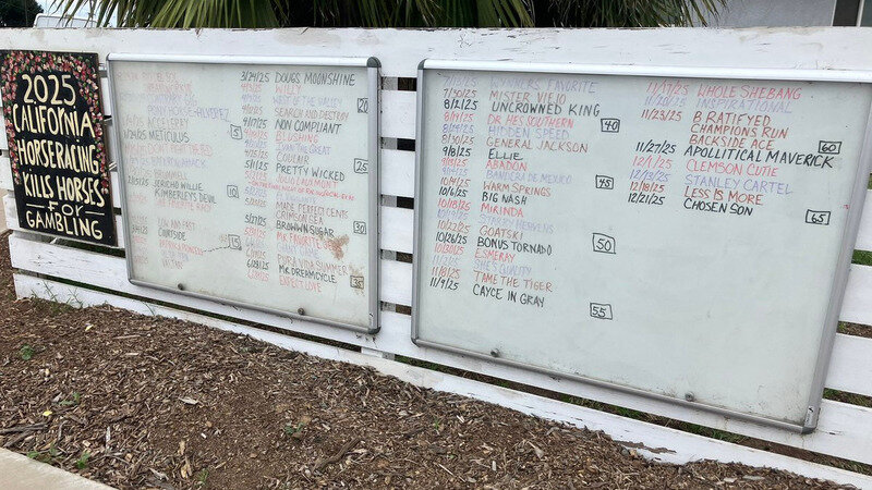 65 Horses Died at California tracks in 2025 Racing Year (ends 12/25), including 5 at Del Mar Racetrack in its 13 weeks of operation.