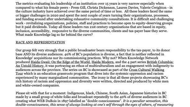 We share Part II of our letter to Minister Mark and the Board of Knowledge Network laying out our case for accountability from the leadership of the Crown Agency.