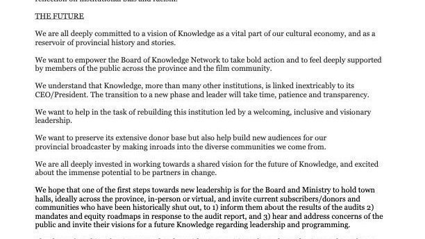Petition updateReplace Executive Leadership at Knowledge Network: BC's Public BroadcasterDOXA PANEL ON THE EQUITY AUDIT