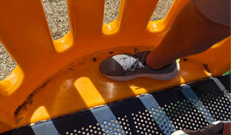 Picture shown is of the cracked yellow plastic. It’s a hazard that a child can be hurt while playing on a playground we thought was safe.