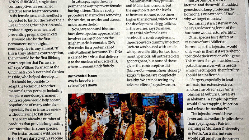 NewScientist June 17, 2023 Nonsurgical Cat Contraception for 3 years !
