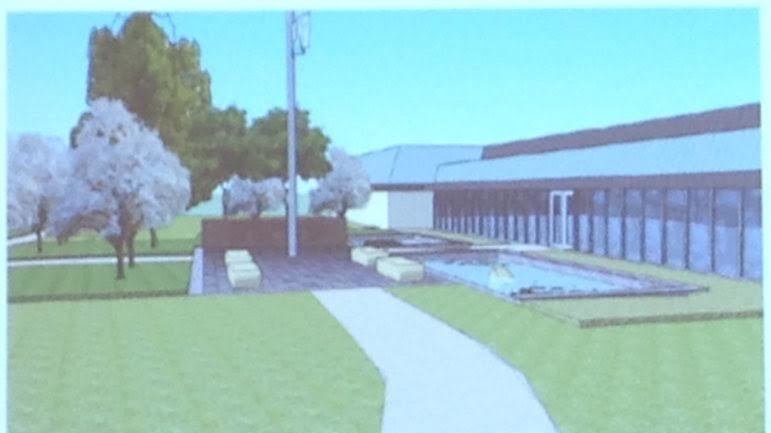 August 2015 – Memorial returns to the public eye. Three revised options were presented to the council at the meeting and were estimated to cost less than the original. The original design featured a larger plaza and more landscaping as well as plans to replace the ponds with new ones but Bicknese estimated the cost could approach $140 thousand. The established budget during this time remains $75,000.