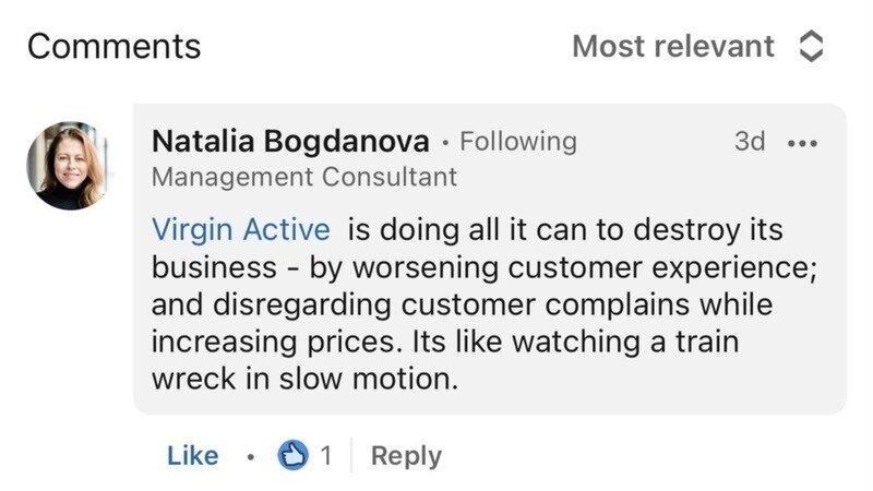 People are increasingly picking up on Virgin Active's apparent disinterest in it's customer experience and disregard for member feedback. They are questioning their business approach and suggest it is damaging the brand.