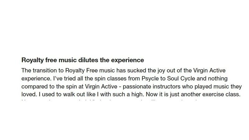 Please feel free to send me your experiences, and forward interactions you have had with Virgin Active on their new music policy. It is good to hear what is happening in other clubs and countries.