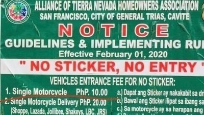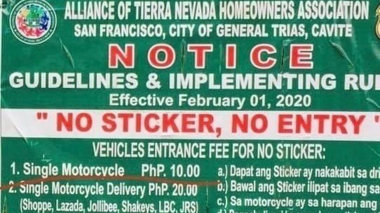 Homeowners are the ones suffering because of this. 10php every entry (for motorcyle) is inhumane! Imagine buying your goods online, shipping would usually be free, GRAB or Food panda would only charge you 59, Lalamove would be 100+ (if its nearby) but when these hardworking people cross our gate, it would cost us another 10 pesos because THE GUARDS WONT LET THEM IN UNLESS THEY PAY.