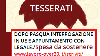 0- NOTA BENE: il 13 Aprile andiamo a parlare con un legale famoso esperto in diritti umani (sostieni la spesa - tesserati www.lavoro-over30.it/iscriviti/ UNISCITI A NOI