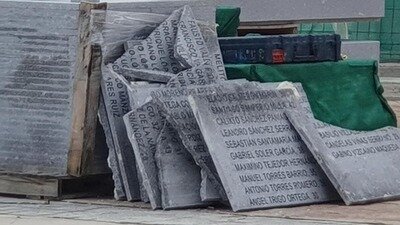 Los Nadie en Lucha, reclamamos al Sr Almeida y a toda la corporación municipal, la restitución de este Memorial a su estado original, con los nombres de l@s asesinad@s en este lugar entre 1939-1945, así como los versos que les acompañaban.