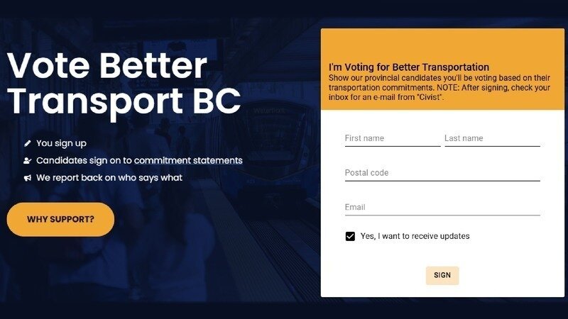 https://votebettertransportbc.ca has a campaign going to make sure Transit stays on the BC ballot for the October 19th election and they've asked me to share their initiative with you.