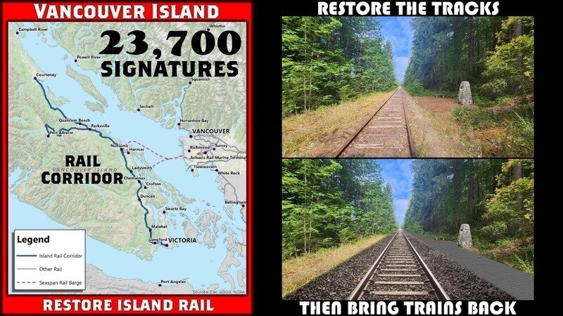 You will have an "I told you so" note in your back pocket for the future should we lose the corridor to greed and/or impatience. I hope and pray that you and I will never have to reflect back on that note in that way, but instead look back in positive reflection that we were part of something much bigger than ourselves that helped turn the tide and set Vancouver Island on a positive course into the future. All we have to do is Restore the Tracks, then Bring Trains Back!