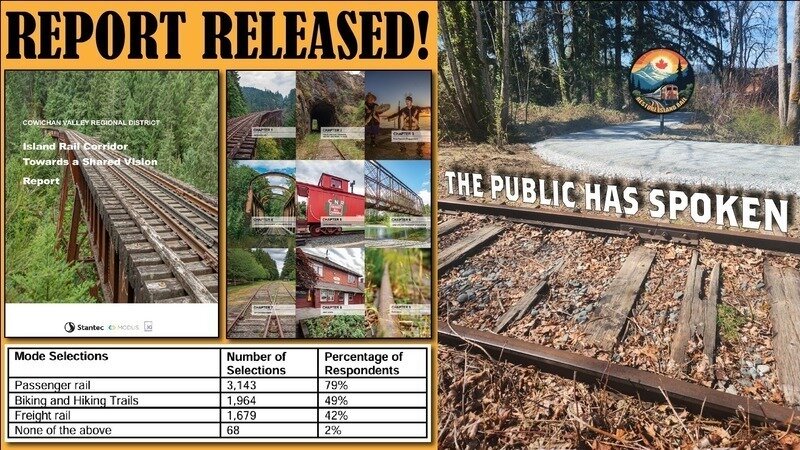 I've mentioned many times on this journey to save Vancouver Island's Railway that every survey and poll ever conducted has shown a minimum level of support for rail at 75%. That very real fact was proven once again in the public engagement recently conducted in the CVRD by Stantec and Modus, funded by the BC Government.
