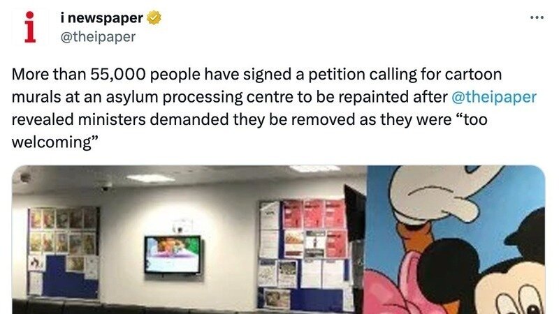Mise à jour sur la pétitionRestore cartoon murals for children at asylum centres!Please share this news coverage. Keep up the pressure!