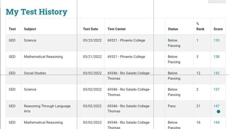 These SCORES include BOTH GED SUCCESS Program held at Rio Salado College and PearsonVue GED held both Rio Salado and Phoenix College. How can subjects not rollover if there is a total of 4 as they are parted per Subject category. There is no more LANGUAGE ARTS WRITING ESSAY! Social Studies have CIVICS along with a short Language Arts Writing 3 in 1.
