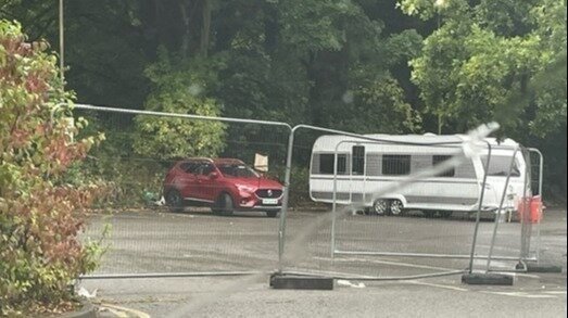 Another picture of the coach and car park section closed off using fencing provided by Derbyshire Dales District Council for the tolerated site. As you can see much of the area was not used by the travellers. By putting this fencing across the entrance, they managed to occupy a further 39 parking spaces.