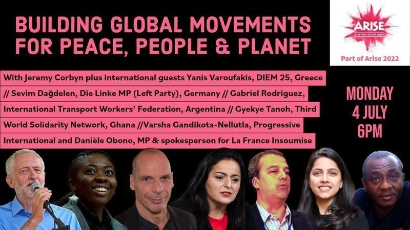 With: Jeremy Corbyn plus international guests Yanis Varoufakis, DIEM 25, Greece // Sevim Dağdelen, Die Linke MP (Left Party), Germany // Gabriel Rodriguez, International Transport Workers' Federation, Argentina // Gyekye Tanoh, Third World Solidarity Network, Ghana //Varsha Gandikota-Nellutla, Progressive International and Danièle Obono, MP & spokesperson for La France Insoumise