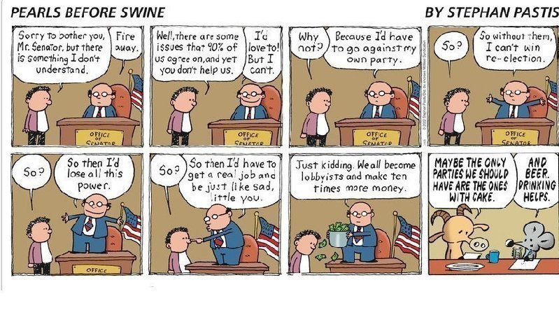 There have been many suggestions by prominent Americans on how to remove the great obstacle of gridlock.  John Dingell (MI, 1926-2019), the longest serving member in the history of Congress, had proposed eliminating the Senate.  Since each state is afforded 2 Senators, regardless of the actual population, this skews undue influence to those states which have small populations, and which tend to be conservative.  For example, "California has 40 million people, while the 20 smallest states have a combined population totaling less than that.  Yet because of an 18th-century political deal, those 20 states have 40 senators, while California has just two.  These sparsely populated, usually conservative states can block legislation supported by a majority of the American people.  That's just plain crazy."