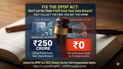 Under the Digital Personal Data Protection (DPDP) Act, 2023, India has reached a landmark in data governance, but it has done so by creating a "relief-less" right. While the Act allows the State to impose penalties of up to ₹250 crore on negligent companies, those funds flow directly to the State. The individual or the "Data Principal" whose privacy is violated, who faces identity theft, or whose sensitive health records are exposed, is entitled to zero guaranteed compensation under the statute.