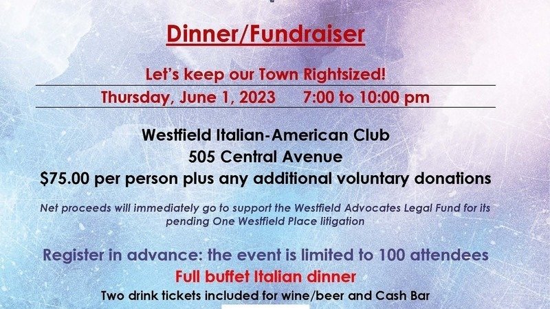 Petition updateRethink the 14 Acre One Westfield Place DevelopmentJune 1st Dinner and Fundraiser - Forecast To Be A Hot Night