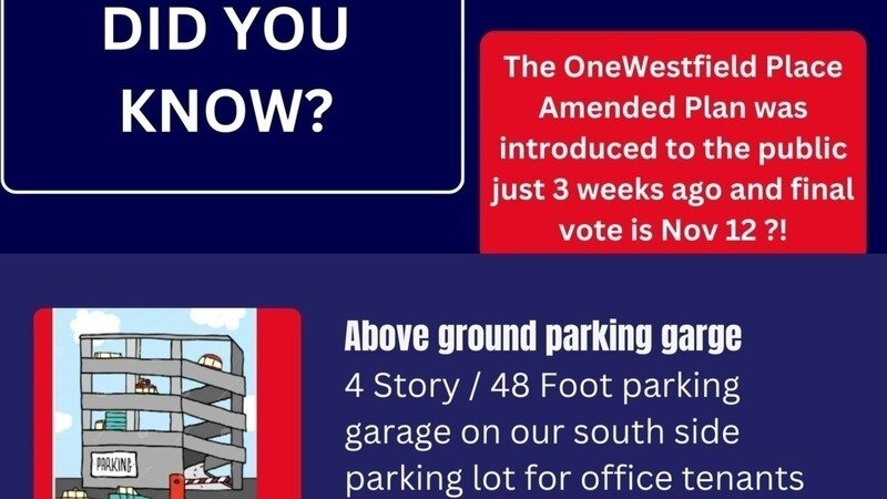 Petition updateRethink the 14 Acre One Westfield Place DevelopmentTown Council Meeting - Your Being Run Over - Tuesday, November 12th - 8PM
