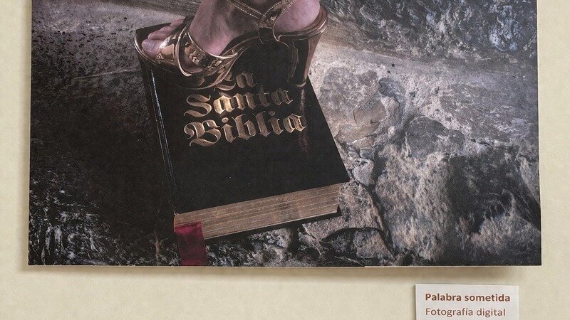 - En la sede de Miraflores de la Alianza Francesa de Lima se exhibe la fotografía “Palabra sometida”, donde se muestra un pie aplastando un libro con el título de “La Sagrada Biblia”.