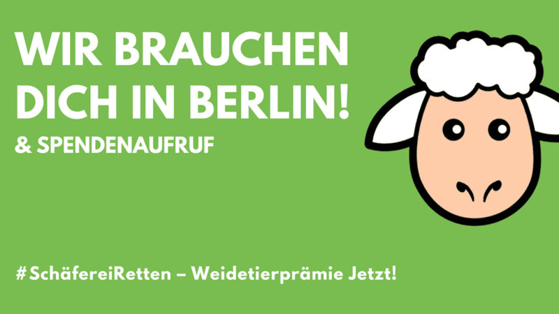 Kommt am Dienstag, dem 13.03 zwischen 11:00 und 14:00 Uhr nach Berlin in die Wilhelmstraße und zeigt, dass ihr die #SchäfereiRetten wollt.