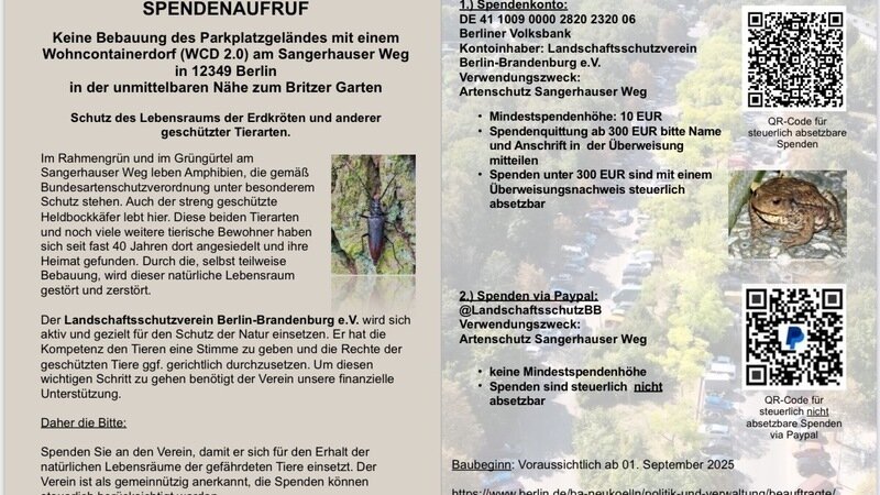Wir senden Euch ein großes Dankeschön! 🥳🤩In so kurzer Zeit sind so viele Spendengelder zusammengekommen, dass der Landschaftsschutzverein Berlin-Brandenburg e.V. nun seine Arbeit aufnehmen und aktiv werden kann. Wir halten Euch auf dem Laufenden und freuen uns über weitere Unterstützung, damit der Verein sich kontinuierlich für den Artenschutz am Sangerhauser Weg einsetzen kann. 🐞🐛🐜