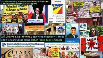 Return Canada Trash Senate Bill to Jail Liberal Party who approve Canada investor of trash export; Canada violated Basel Convention Waste Control Act; Jail Custom and DENR government officials disposing trash to Capaz Tarlac and other Philippine landfill