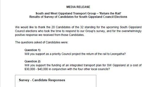 MEDIA RELEASE: ‘South and West Gippsland Transport Group – 'Return the Rail' Results of Survey of Candidates for South Gippsland Council Elections’
