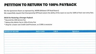 Getting payback back to 100 % will allow the sportsman classes to continue to grow.