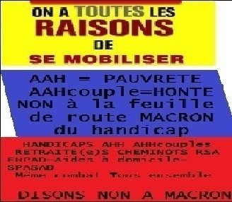 J'appelle à soutenir les bénéficiaires de l'Allocation aux Adultes Handicapées, les Retraité(e)s, les EHPAD, mais aussi les cheminots, les bénéficiaires du RSA parmi lesquelles beaucoup de personnes handicapées qui souffrent........