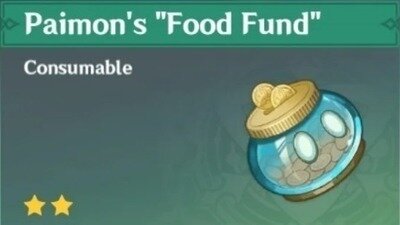 As an avid player of Genshin Impact, I have invested significant time and resources into this game. One item that has been a point of contention for me is the "Paimon's Food Fund". This item, obtained from the quest called "Villains". In the episode paimon talks about “Just don't forget to put more Mora in Our food fund from now on, alright”. I incorrectly assumed that this item would have a slider to freely select the amount to be taken out and the ability to make deposits, like the Mora bag Tartaglia gave me. However, instead of fulfilling its intended purpose, it merely acts as a consumable item that gives players 15000 mora upon destruction.