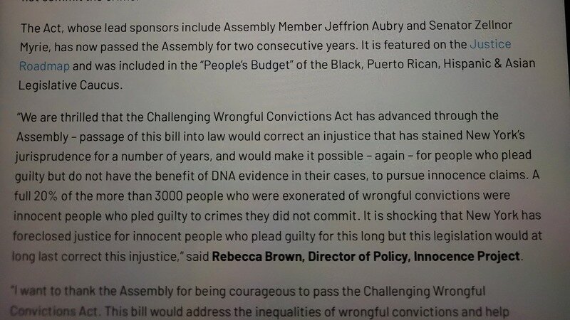 Please encourage governor hochul to sign the bill into law. A2878: clear wrongful comviction law.