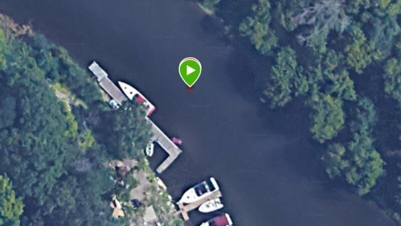 The image above shows the previous position of THYCs "gas dock" the green dot shows via GPS coordinates how far the "gas dock" now extends into the Humber River today.