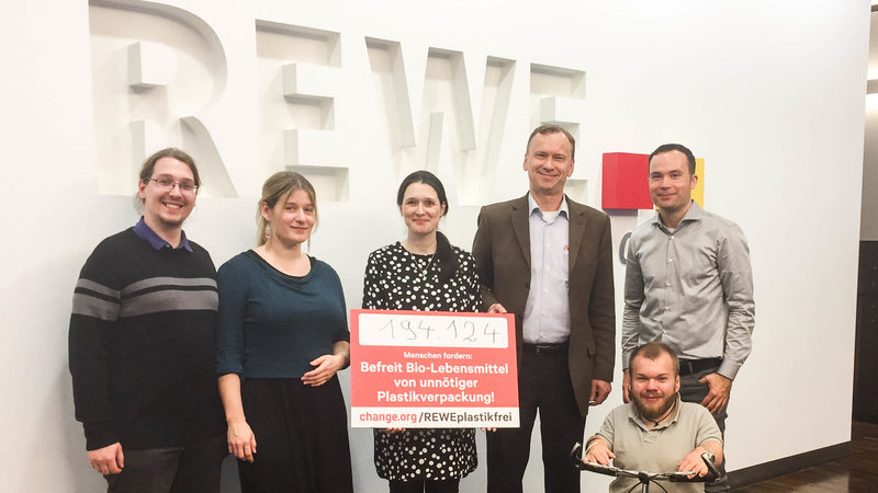 Petition updateREWE: Befreie Bio Lebensmittel von unnötiger Plastikverpackung➡️ So war die Übergabe an @REWE_Supermarkt! #REWEplastikfrei